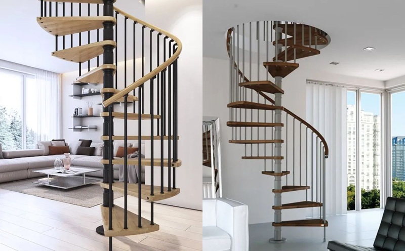 Desain dapat bereksperimen dengan memadukan kayu dengan baja tahan karat atau kaca berteknologi tinggi. Hal ini menciptakan desain tangga putar yang unik dan inovatif.